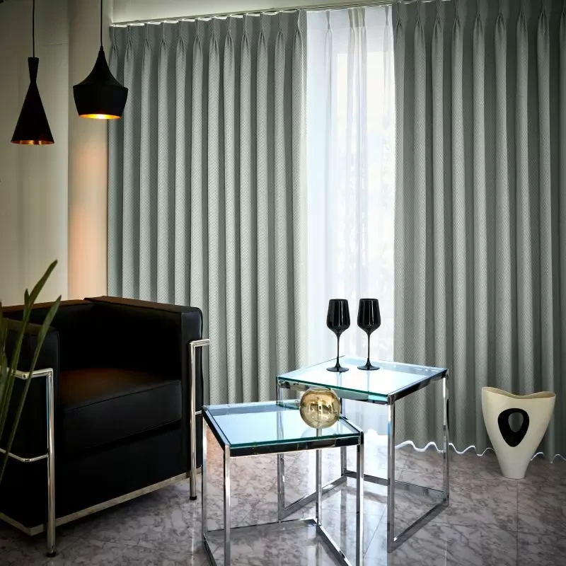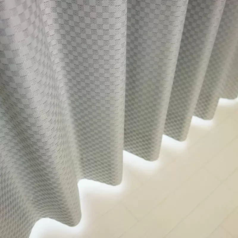 凹凸のある細かい市松チェック模様で光沢感があり、お部屋に落ち着いた高級感をもたらします。遮光機能付き。