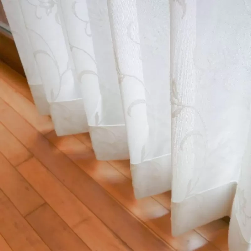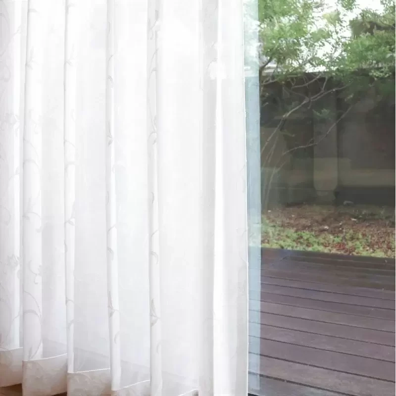 ミラー機能付きレースカーテン。ボリュームのある糸でのびやかに植物柄が描かれたエレガントなレースカーテンです。