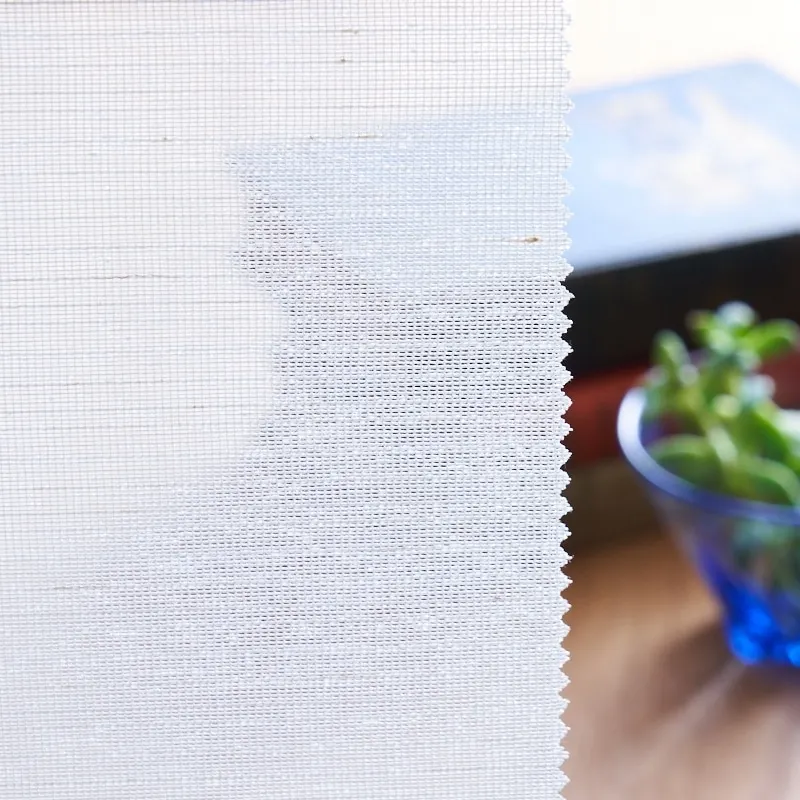 ミラー機能付きレースカーテン。横糸の一部にリネンが混ぜられており、天然素材の風合いが感じられるナチュラルなレースカーテンです。