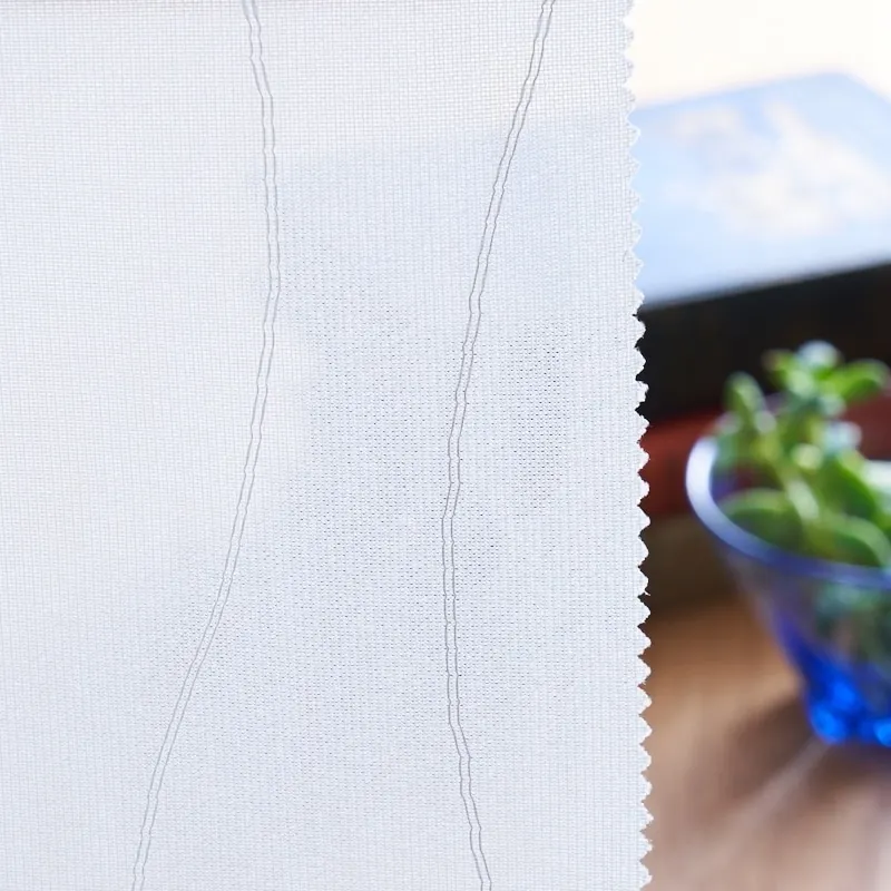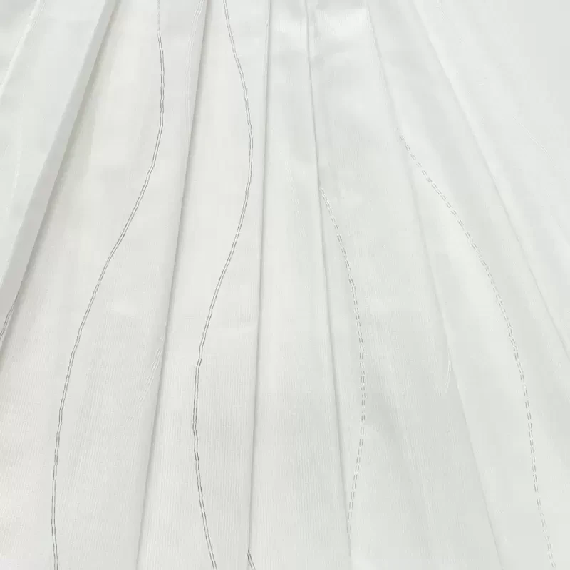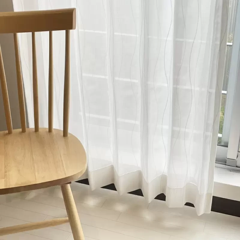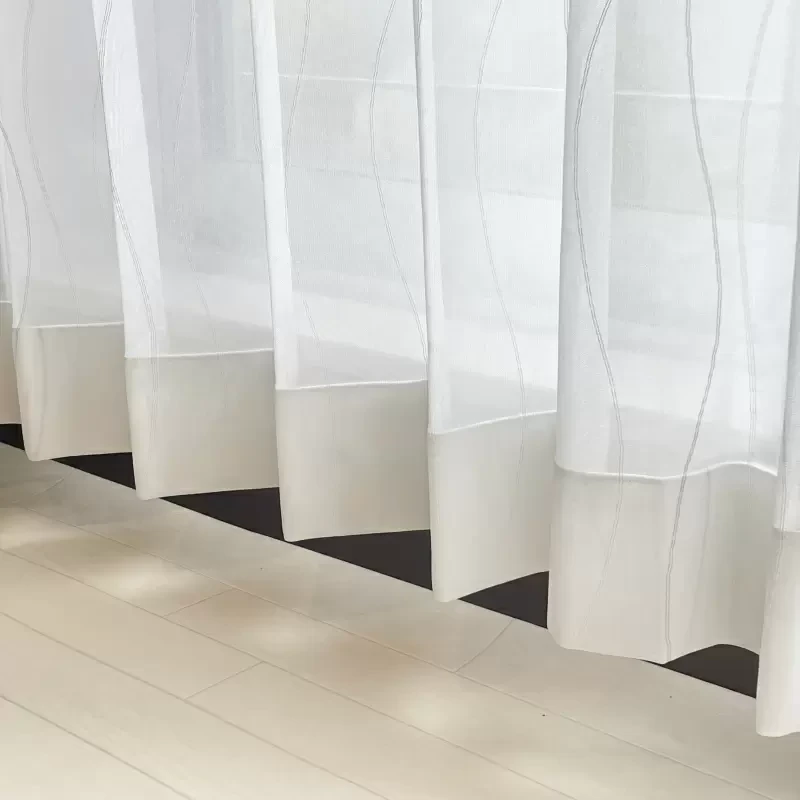 ゆったりとしたウェーブ柄を、光沢のあるホワイトとマットなグレーの対比的な2色使いによりモダンに表現した編みレースです。ミラー、遮熱、UVカット機能付き。