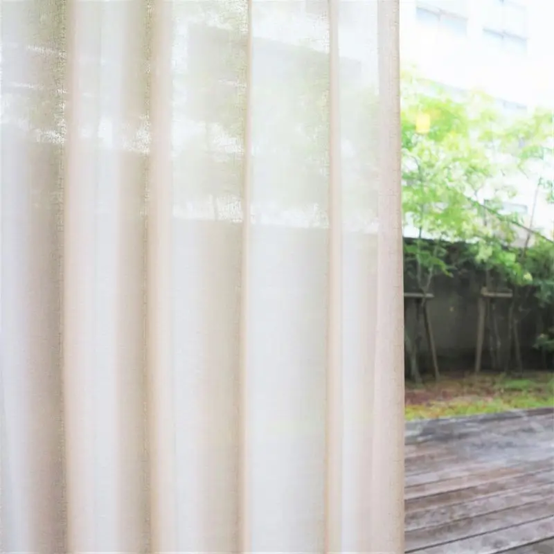 ミラー機能付きレースカーテン。表地は糸がランダムに織られており、ザクッとした印象のシンプルな無地のレースカーテンえす。カラーバリエーション豊富なので厚地カーテンやお部屋のインテリアとのカラーコーディネートをお楽しみください。