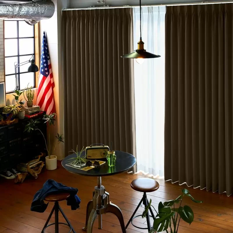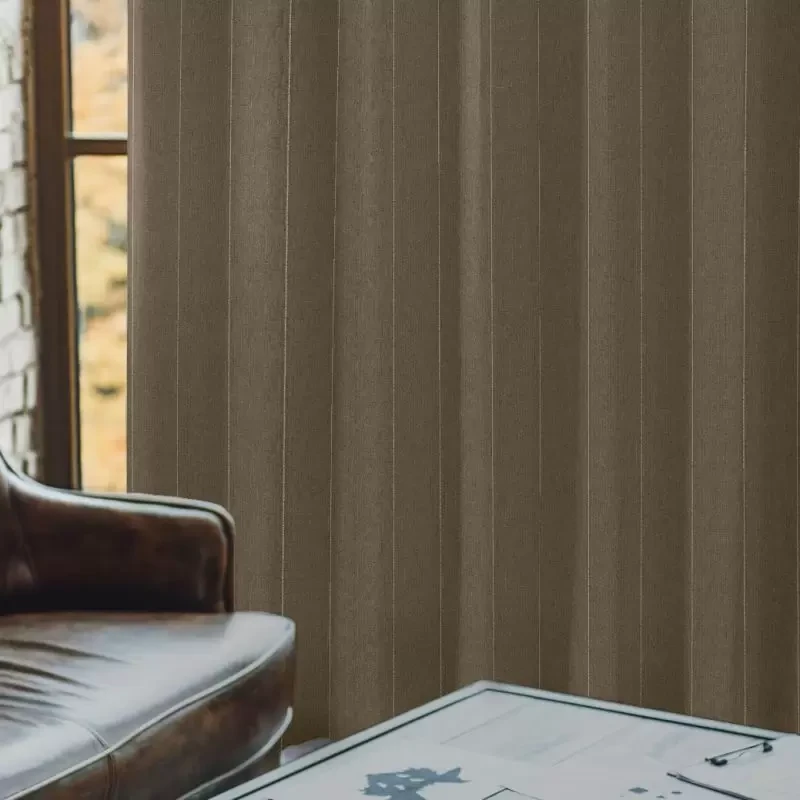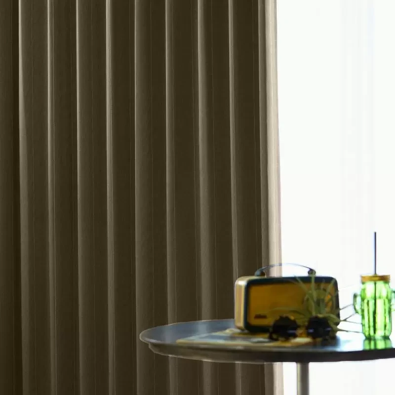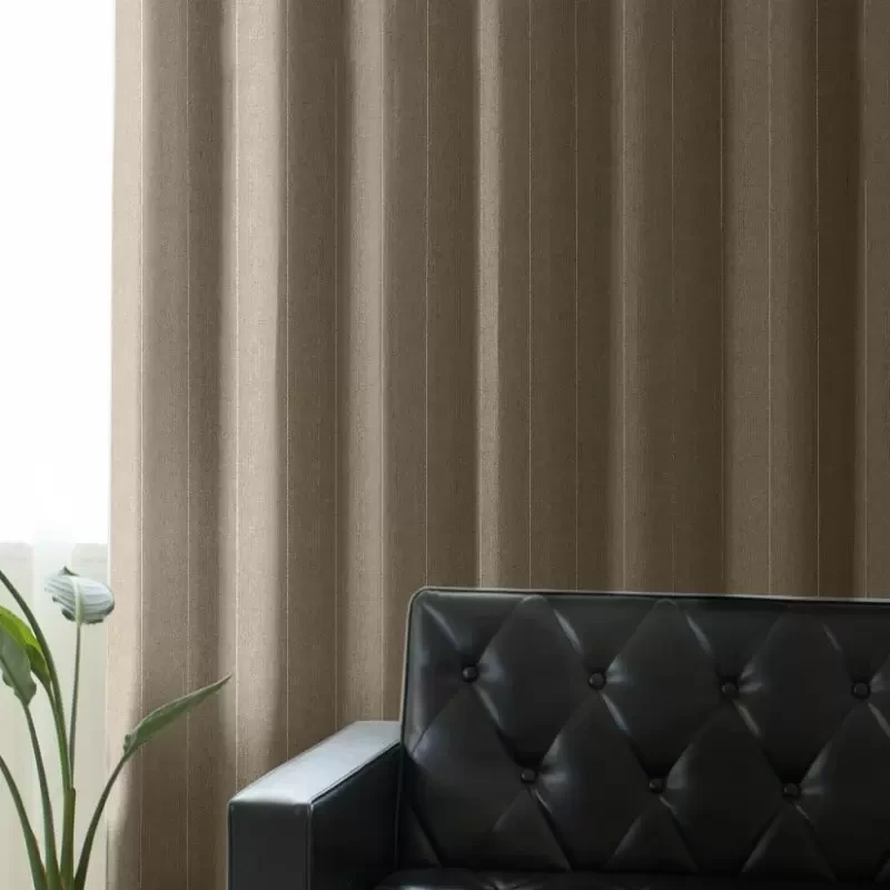 落ち着いた色味をベースにしながら、絶妙なミックス感がある色で、きらりと光る縦のラインとあいまって、上質さを感じさせるカーテンです。オトナカジュアルなインテリアに是非お選びください。