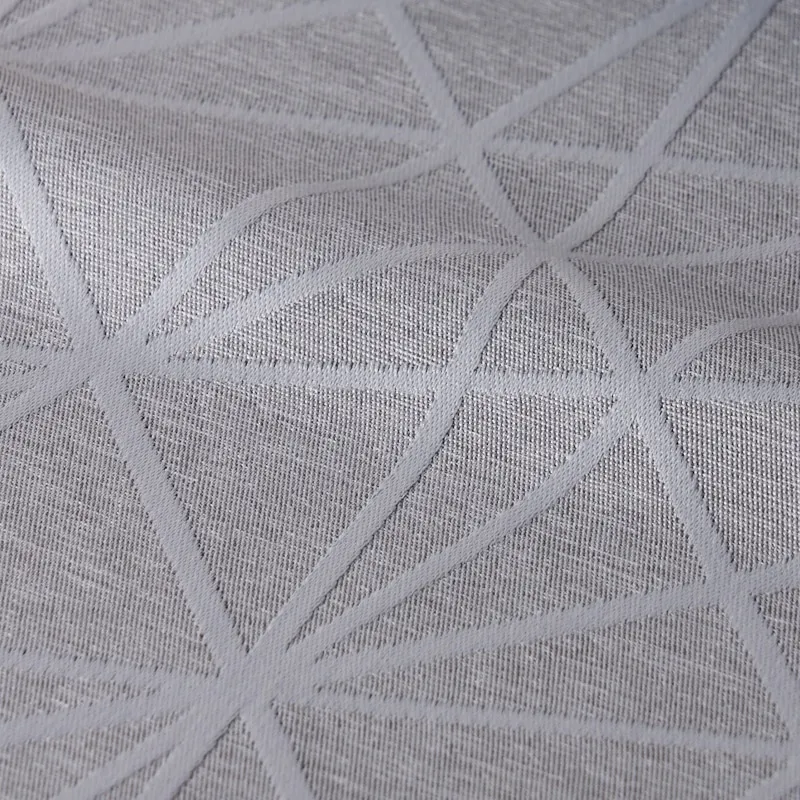 レーザービームを交差させたような、シャープでスタイリッシュな幾何紋様が美しい、小紋柄シリーズ遮光ドレープです。織り?染めまでの工程をすべて日本国内で行っており、品質は折り紙付きです。