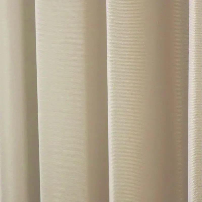 光沢感がありヨコの方向に細かくボーダーが入っております。生地感と色合いがモダンでありどんなお部屋にも使いやすいオススメの遮光カーテンです。