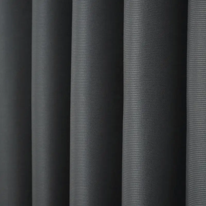 光沢感がありヨコの方向に細かくボーダーが入っております。生地感と色合いがモダンでありどんなお部屋にも使いやすいオススメの遮光カーテンです。