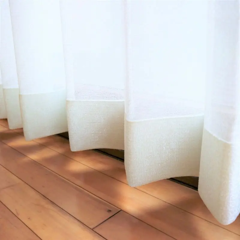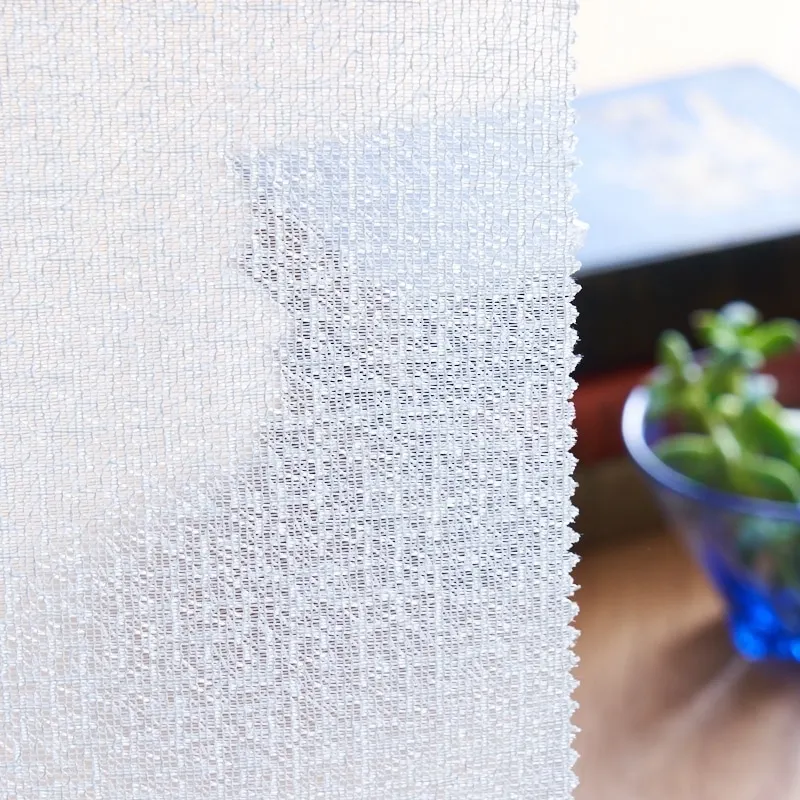 ミラー機能付きレースカーテン。表地は糸がランダムに織られており、ザクッとした印象のシンプルな無地のレースカーテンです。カラーバリエーション豊富なので厚地カーテンやお部屋のインテリアとのカラーコーディネートをお楽しみください。