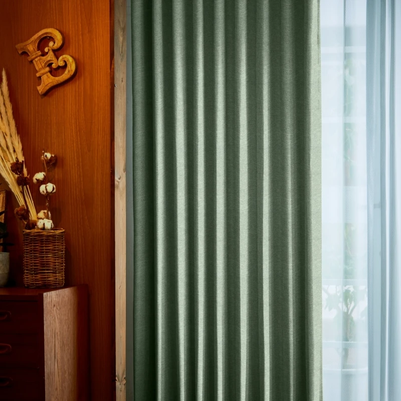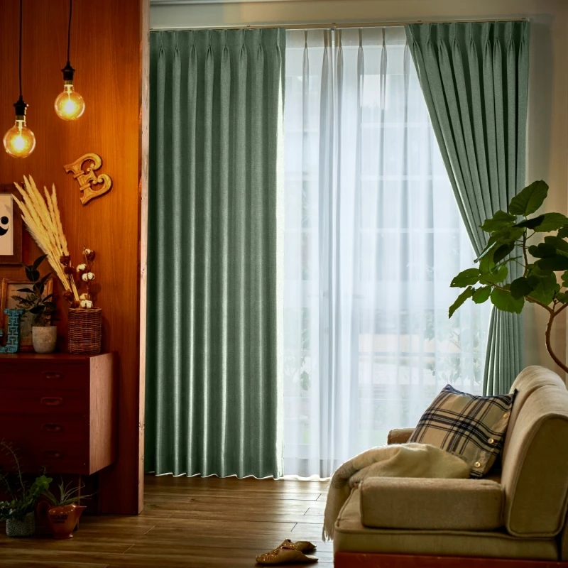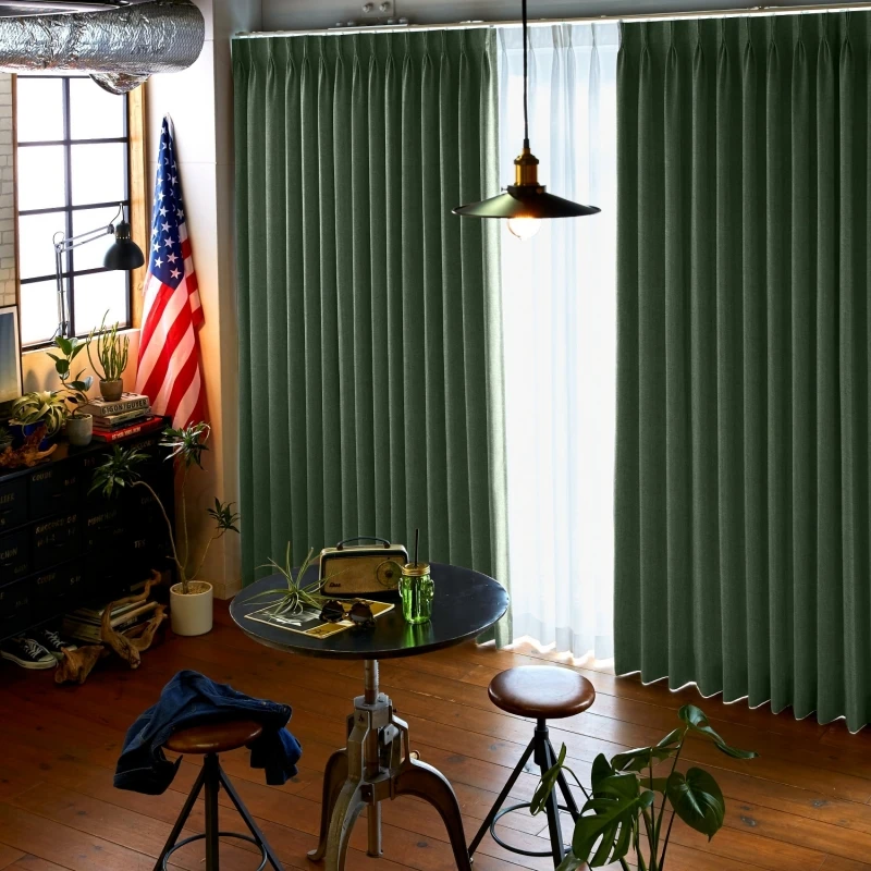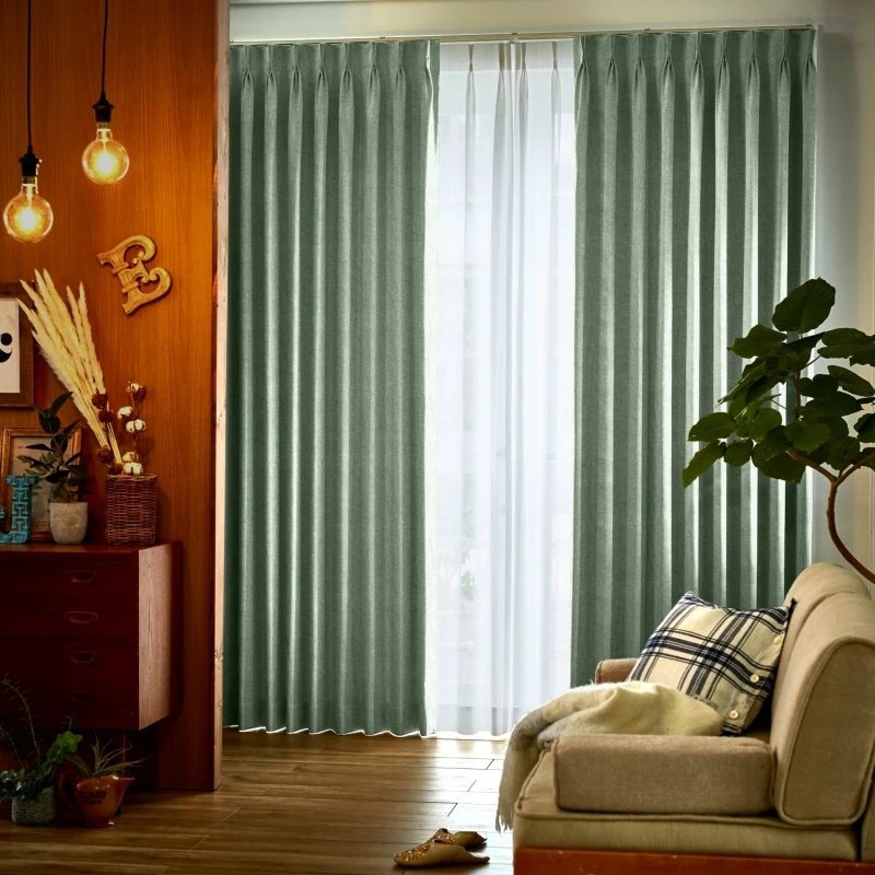 クールで繊細なラインのエンボス加工で、優雅なリーフ柄を表現した遮光2級のドレープです。無地調なので幅広く使いやすく、ナチュラル、カジュアル、エレガンス、モダンテイストにもよく合います。見る角度によって浮かび上がる柄は、様々な方向に向かって伸びる葉が生き生きとしていて、静寂の中にリズミカルな動きを感じるデザインになっています。家庭洗濯OK(ウォッシャブル)なので、お手入れも簡単。カラー:ややグレイッシュなグリーン色