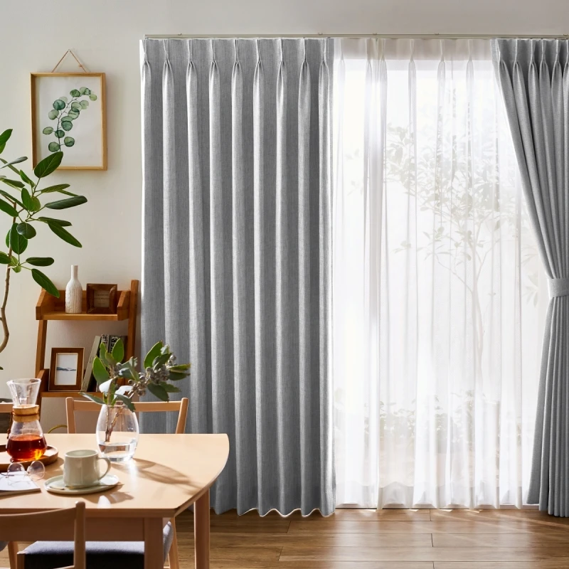 ふっくらとした厚みがあり、温かみのある生地感の遮光2級の無地ドレープです。ミックス感のある糸を使用したざっくりとしたナチュラル感のある織りが、おしゃれで豊かな表情を持っているので、落ち着きのある空間に仕上がります。シンプルでスマート、かつタイムレスな印象のドレープなので、リビングや寝室はもちろん、書斎にもおすすめのアイテムです。家庭洗濯OK(ウォッシャブル)なので、お手入れも簡単です。カラー:ミニマルなライトグレー色