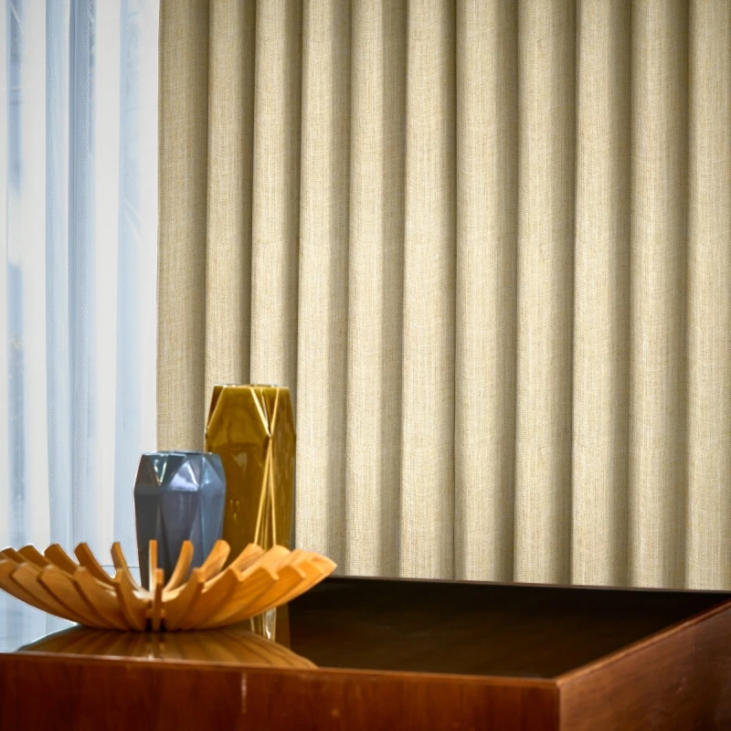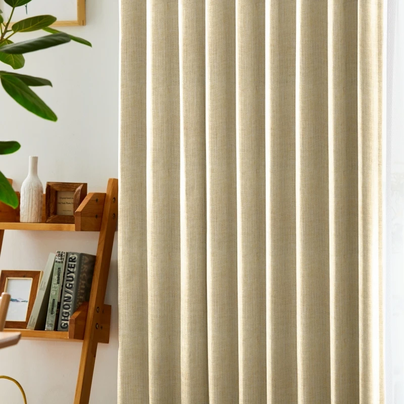 ふっくらとした厚みがあり、温かみのある生地感の遮光2級の無地ドレープです。ミックス感のある糸を使用したざっくりとしたナチュラル感のある織りが、おしゃれで豊かな表情を持っているので、落ち着きのある空間に仕上がります。シンプルでスマート、かつタイムレスな印象のドレープなので、リビングや寝室はもちろん、書斎にもおすすめのアイテムです。家庭洗濯OK(ウォッシャブル)なので、お手入れも簡単です。カラー:ナチュラルなベージュ色