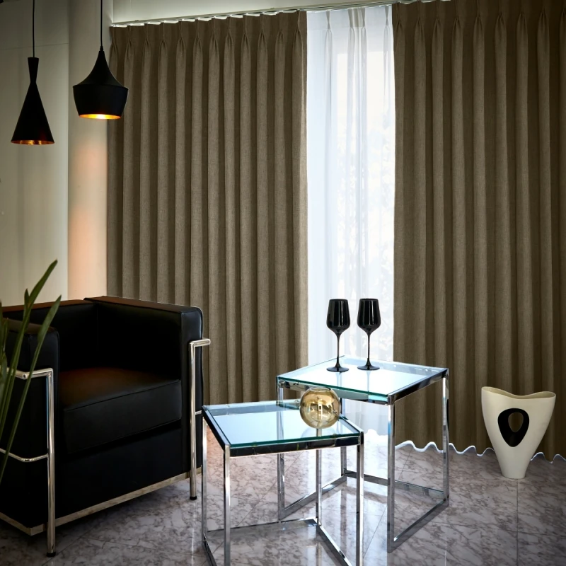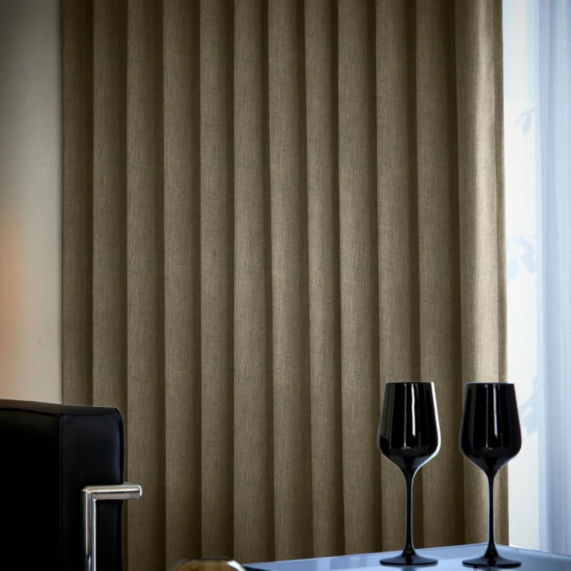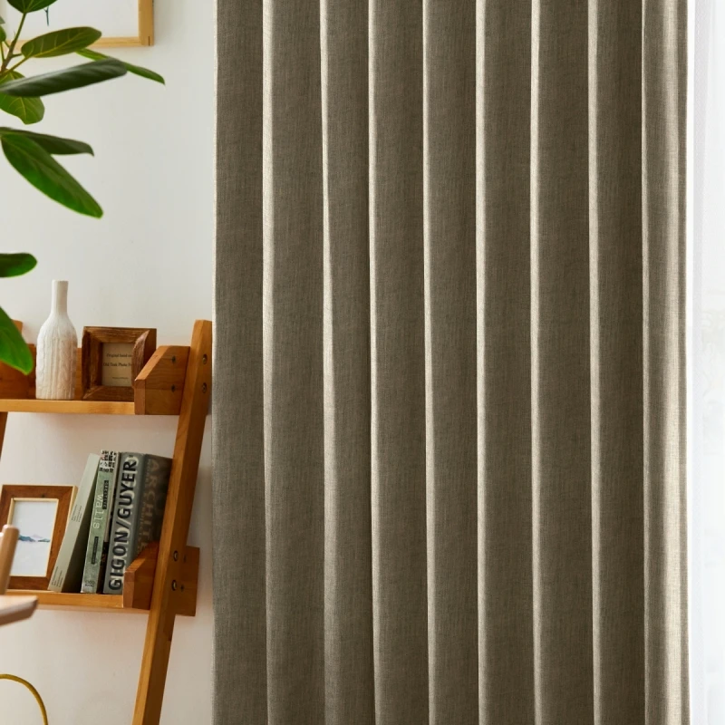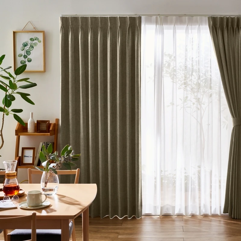 ふっくらとした厚みがあり、温かみのある生地感の遮光1級の無地ドレープです。ミックス感のある糸を使用したざっくりとしたナチュラル感のある織りが、おしゃれで豊かな表情を持っているので、落ち着きのある空間に仕上がります。シンプルでスマート、かつタイムレスな印象のドレープなので、リビングや寝室はもちろん、書斎にもおすすめのアイテムです。家庭洗濯OK(ウォッシャブル)なので、お手入れも簡単です。カラー:ナチュラル感のあるブラウン色