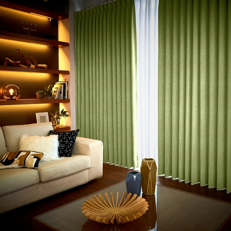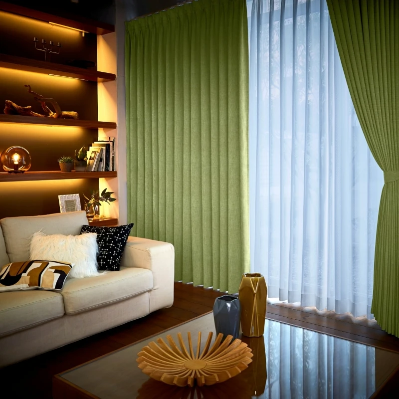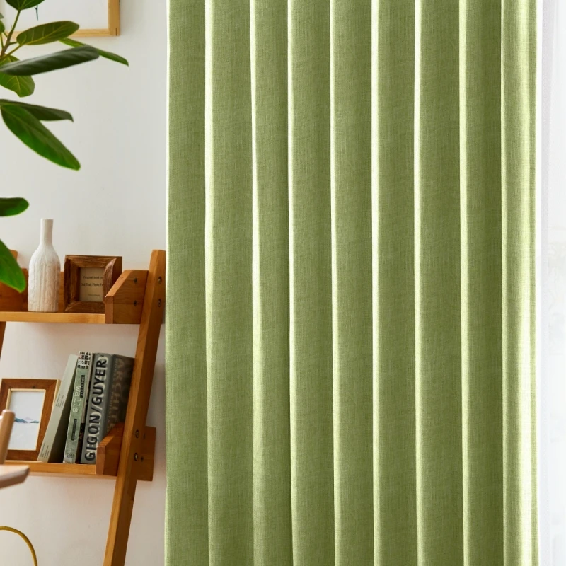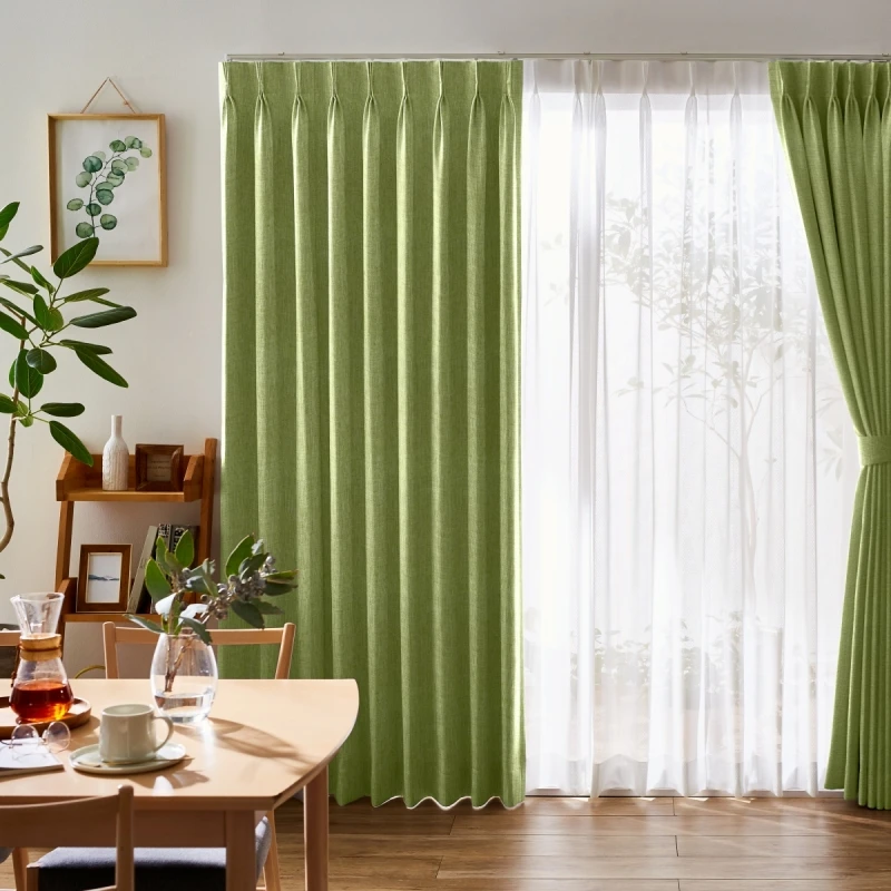 ふっくらとした厚みがあり、温かみのある生地感の遮光2級の無地ドレープです。ミックス感のある糸を使用したざっくりとしたナチュラル感のある織りが、おしゃれで豊かな表情を持っているので、落ち着きのある空間に仕上がります。シンプルでスマート、かつタイムレスな印象のドレープなので、リビングや寝室はもちろん、書斎にもおすすめのアイテムです。家庭洗濯OK(ウォッシャブル)なので、お手入れも簡単です。カラー:ナチュラルなイエローグリーン色