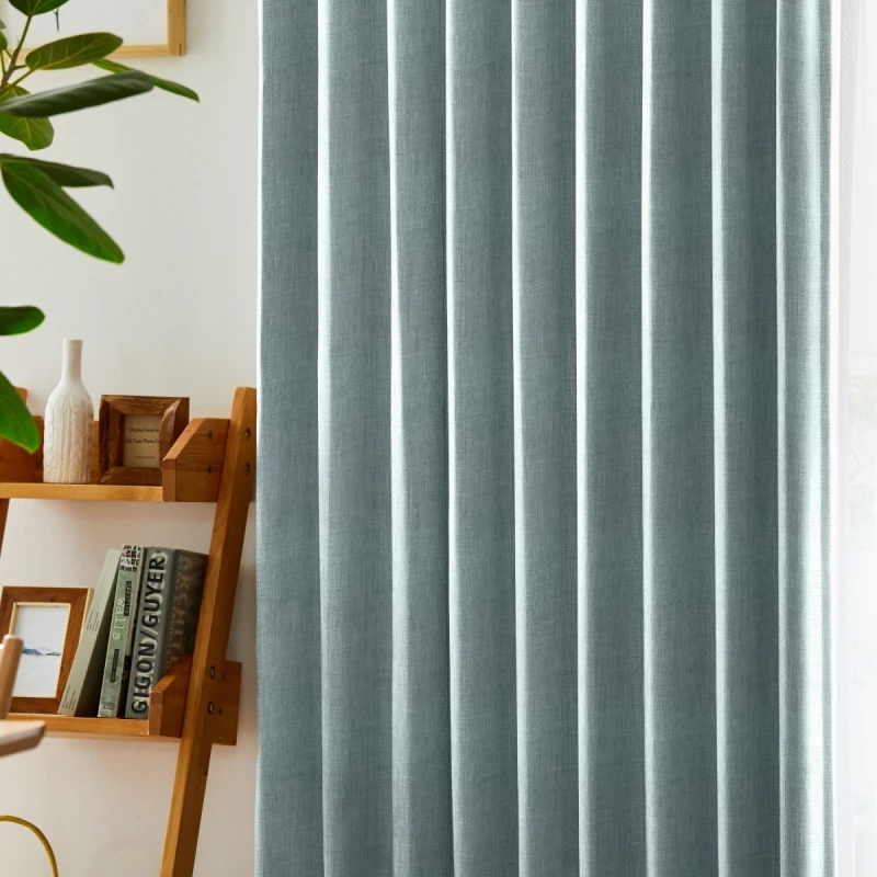 ふっくらとした厚みがあり、温かみのある生地感の遮光2級の無地ドレープです。ミックス感のある糸を使用したざっくりとしたナチュラル感のある織りが、おしゃれで豊かな表情を持っているので、落ち着きのある空間に仕上がります。シンプルでスマート、かつタイムレスな印象のドレープなので、リビングや寝室はもちろん、書斎にもおすすめのアイテムです。家庭洗濯OK(ウォッシャブル)なので、お手入れも簡単です。カラー:爽やかなライトブルー色