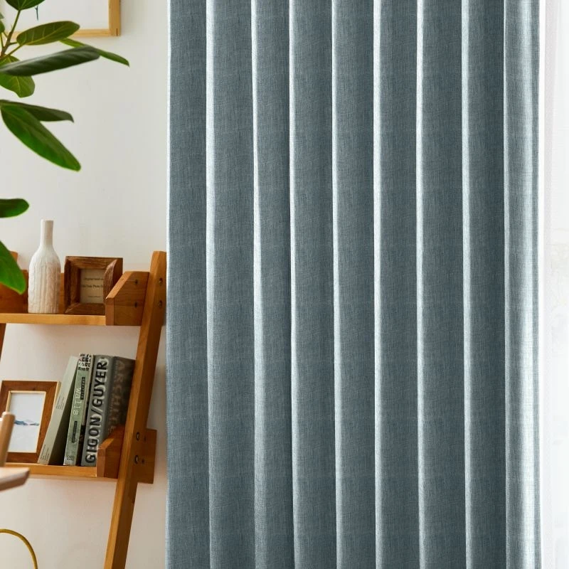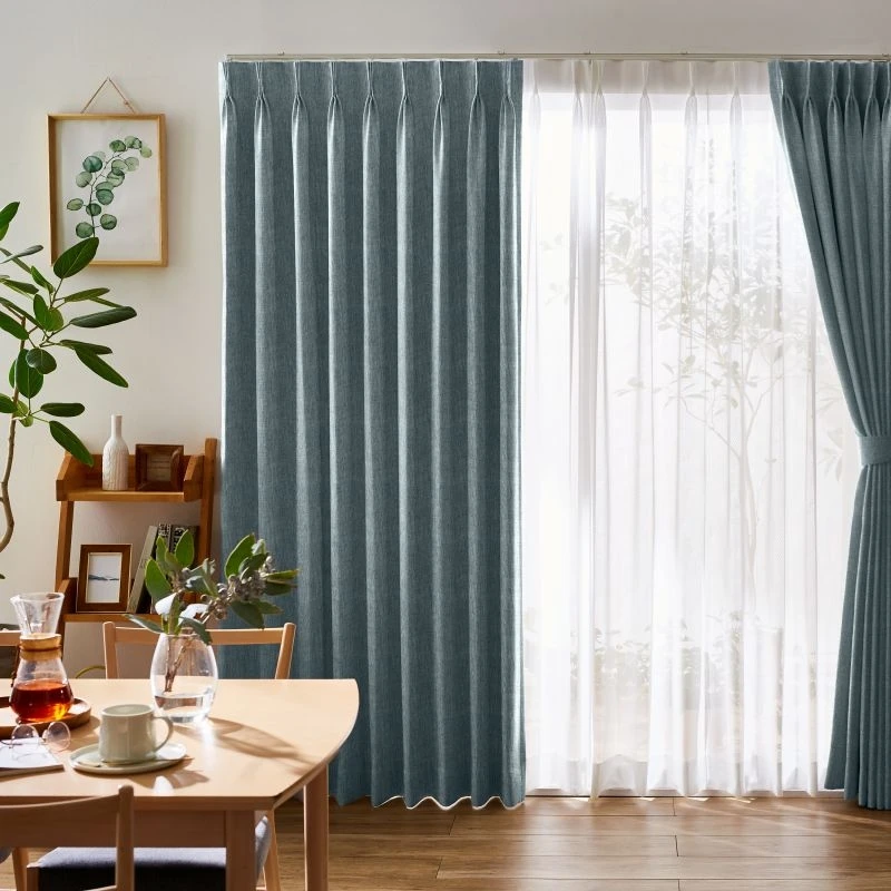 ふっくらとした厚みがあり、温かみのある生地感の遮光2級の無地ドレープです。ミックス感のある糸を使用したざっくりとしたナチュラル感のある織りが、おしゃれで豊かな表情を持っているので、落ち着きのある空間に仕上がります。シンプルでスマート、かつタイムレスな印象のドレープなので、リビングや寝室はもちろん、書斎にもおすすめのアイテムです。家庭洗濯OK(ウォッシャブル)なので、お手入れも簡単です。カラー:ウォッシュドデニムのようなブルー色