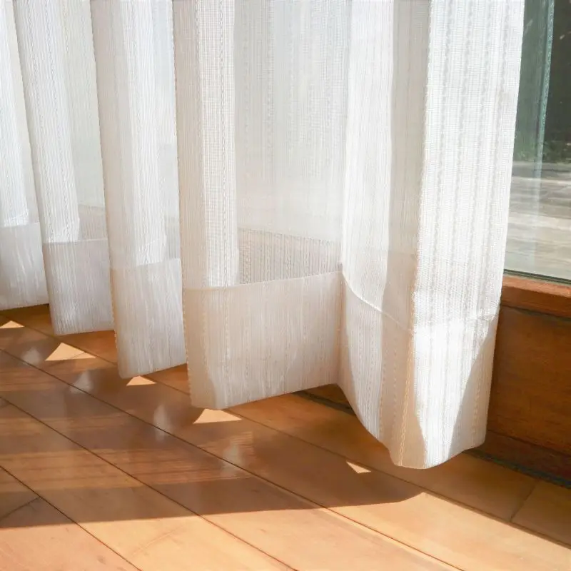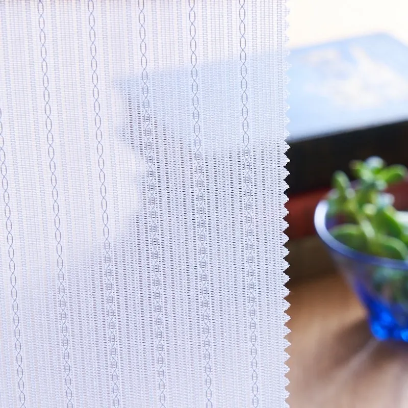 ミラー・UVカット・遮熱・防蚊効果のある機能レースです。縦のラインが強調されたレースカーテンです。