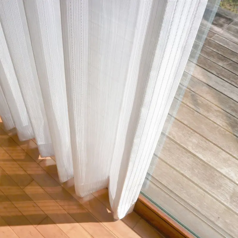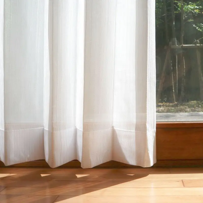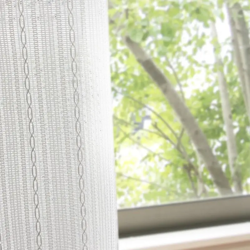ミラー・UVカット・遮熱・防蚊効果のある機能レースです。縦のラインが強調されたレースカーテンです。