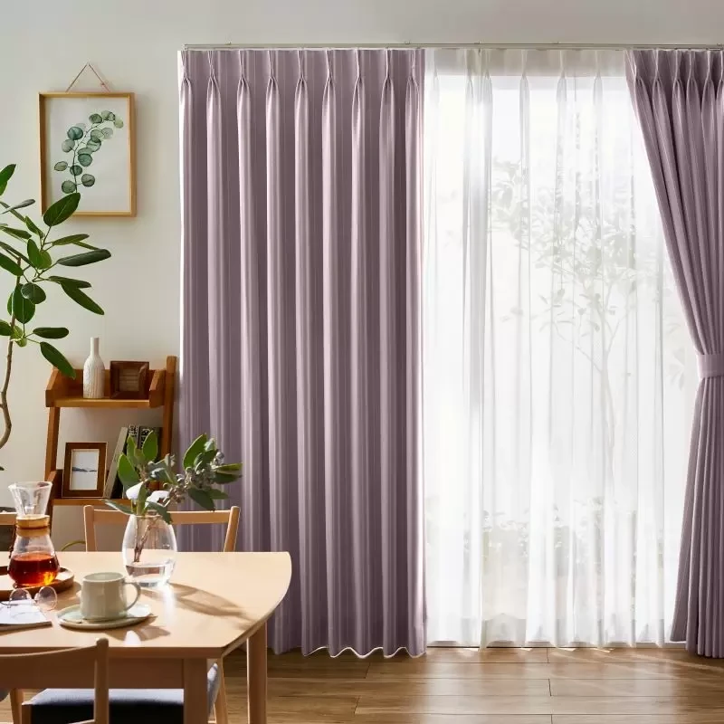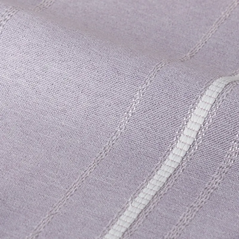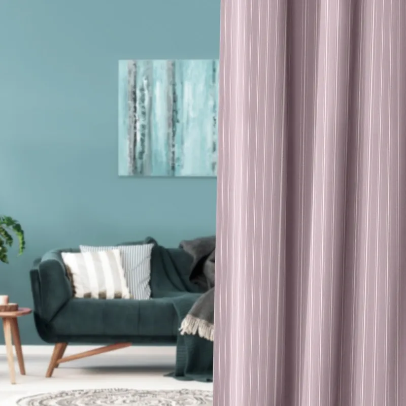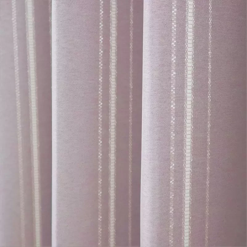 リボンテープで引かれたかの様なストライプと糸の光沢がキラキラ光るストライプが印象的な遮光3級のカーテンです。程よい高級感がリビングなどに使いやすいです。