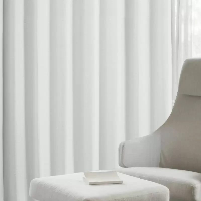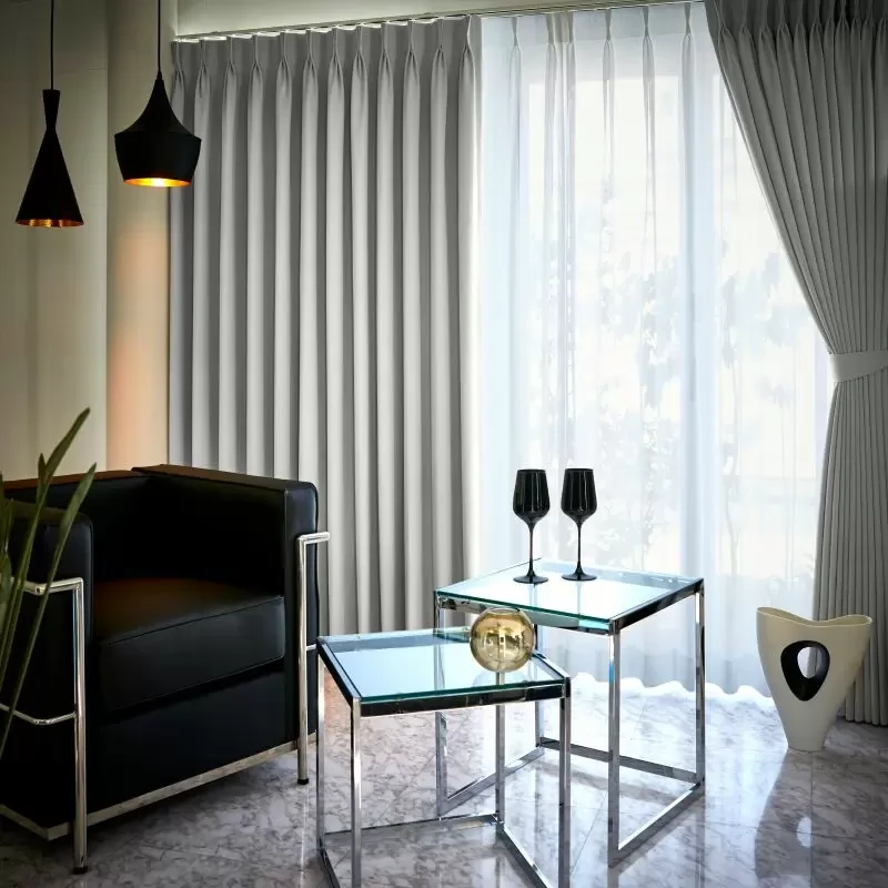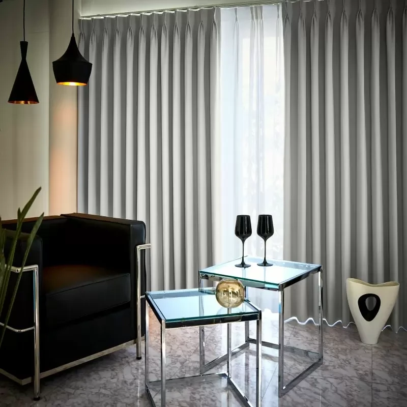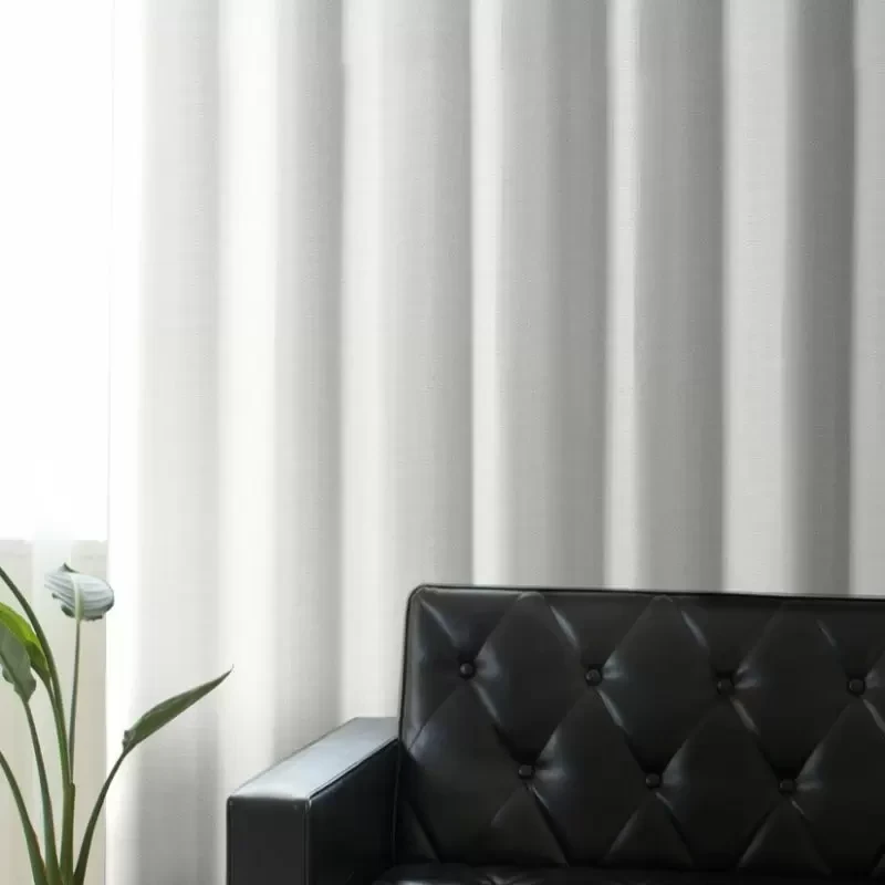 光沢感がありヨコの方向に細かくボーダーが入っております。生地感と色合いがモダンでありどんなお部屋にも使いやすいオススメの遮光カーテンです