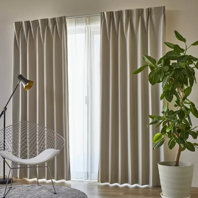 上品な光沢感のある無地調・遮光(2級)のドレープカーテンです。シンプルながらも、ヨコ方向に細かく入ったボーダーが、生地に奥行き感を出し、高級感を演出します。ナチュラル、アーバン、モダン、カジュアルなど、どんなテイストにも合わせやすく、おすすめの売れ筋商品です。リビングや寝室、書斎など、幅広いシーンでお使い頂けます。家庭洗濯OK(ウォッシャブル)なので、お手入れも簡単。カラー:シンプルなアイボリー色