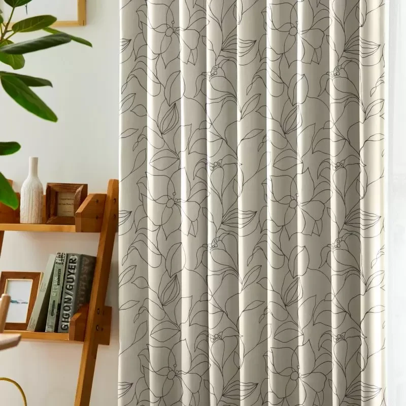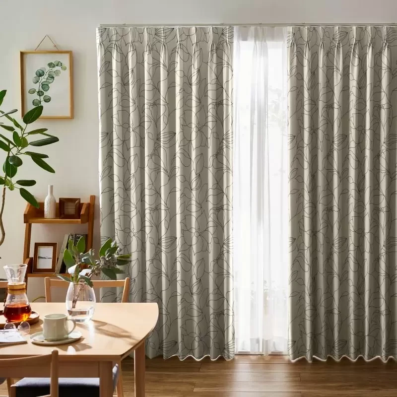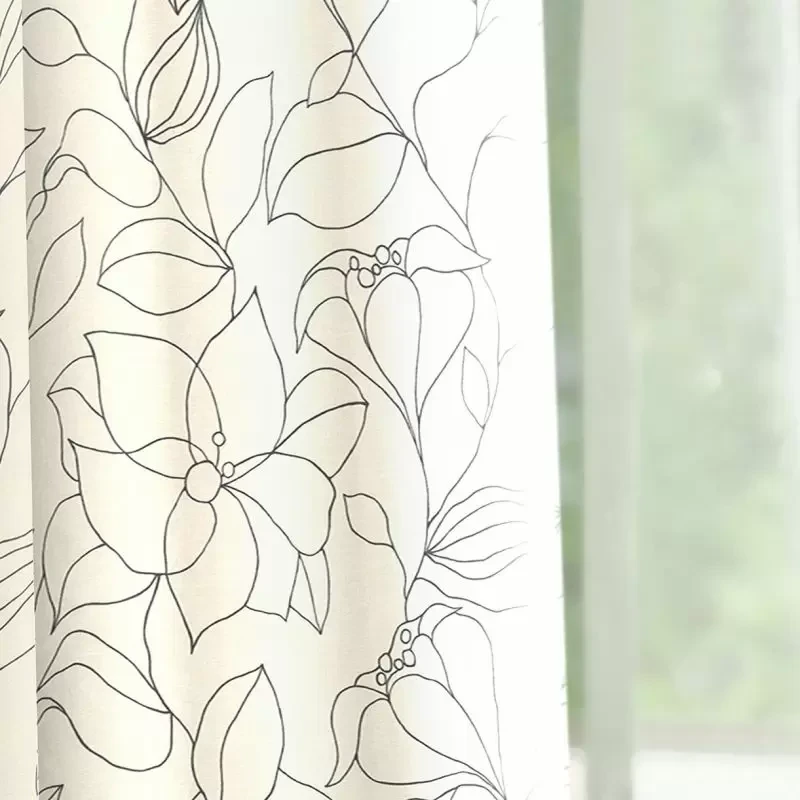 ナチュラルな濃淡と光沢を持った生地を使い、ゆりのモチーフを大胆にデフォルメしたおしゃれな線画プリントで、さらに遮光機能もあり、ジャストカーテンの多数のラインナップの中でも1,2を争う人気商品です。