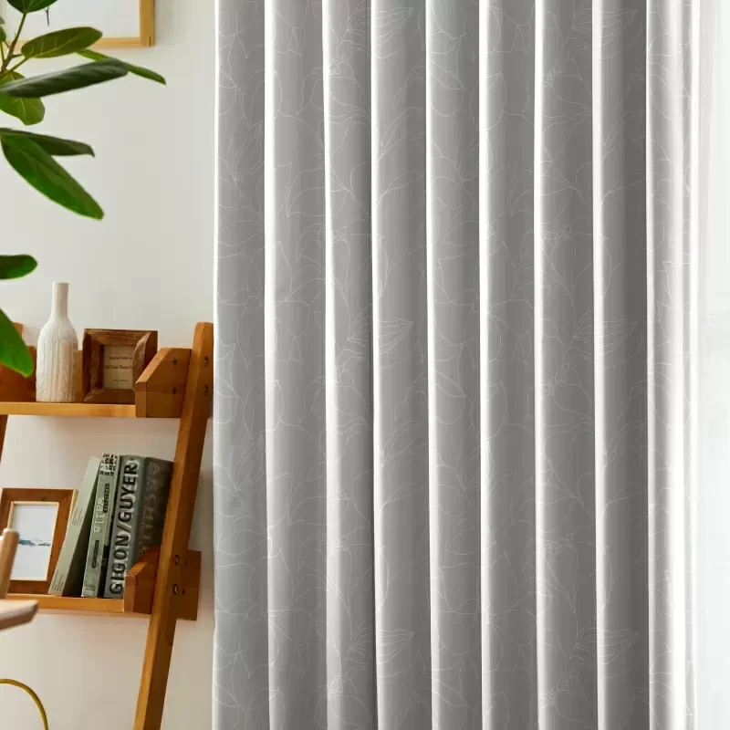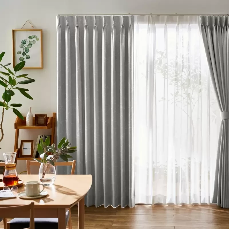 ナチュラルな濃淡と光沢を持った生地を使い、ゆりのモチーフを大胆にデフォルメしたおしゃれな線画プリントで、さらに遮光機能もあり、ジャストカーテンの多数のラインナップの中でも1,2を争う人気商品です。