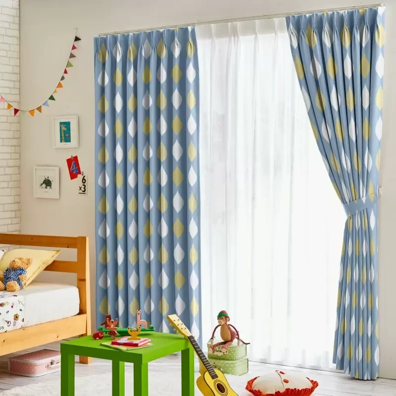 雨粒とお菓子のドロップをモチーフにした、キュートなデザイン。北欧インテリアにマッチする、ややグレイッシュなトーンで、子供部屋だけでなく、女性のお部屋やリビングと、幅広くお使いいただけます。
