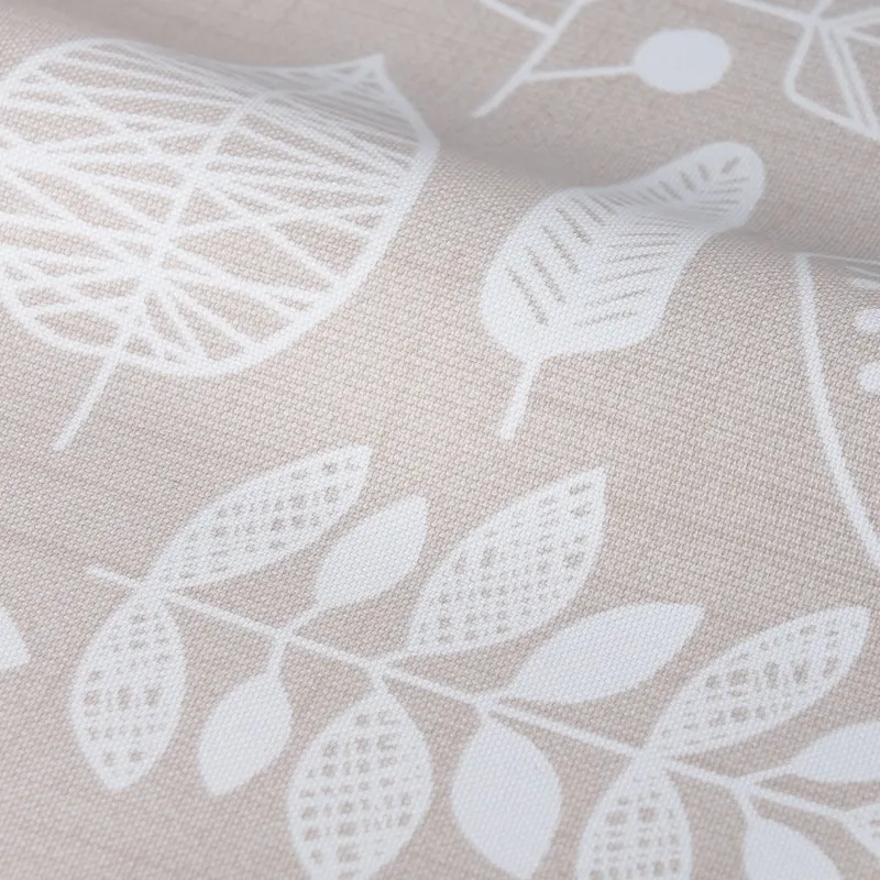 手描きスケッチ風に様々な形の葉っぱを描いた、カジュアルで北欧ライクな印象の遮光プリントドレープです。お部屋の印象をパッと明るくしてくれる高彩度のイエローとターコイズブルー、ベーシックで色なじみの良いベージュとグレーの4色展開。