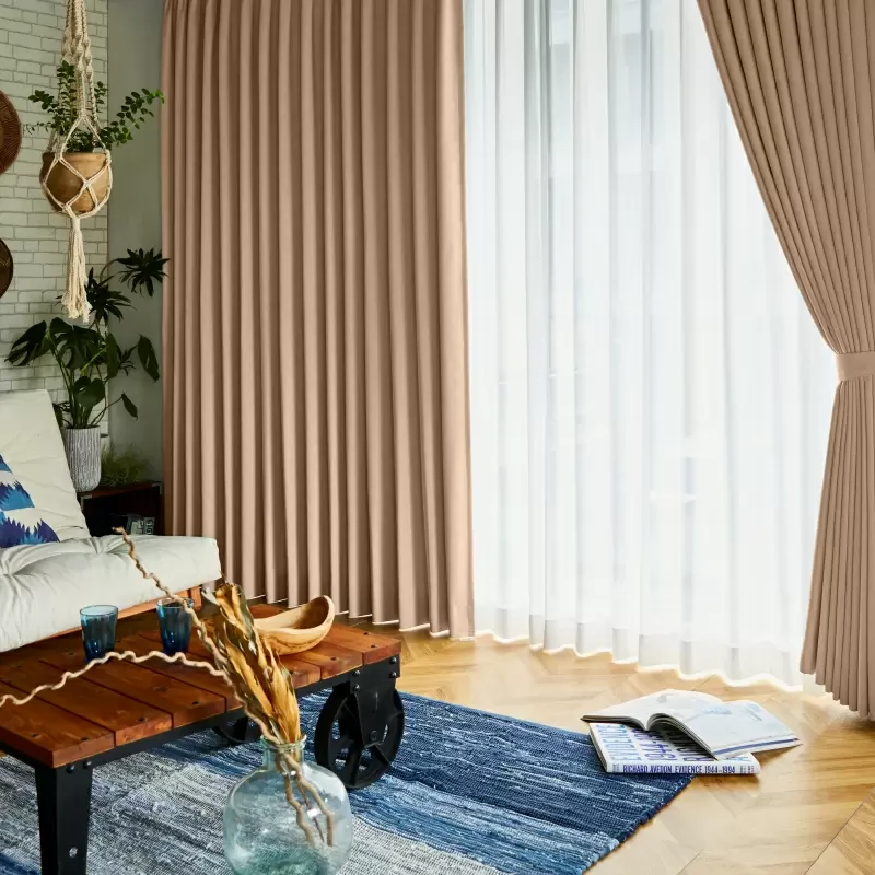 温かみのあるタッチのサークル織り模様が連なった、シンプルで飽きの来ないデザインが魅力の小紋柄シリーズ遮光ドレープです。織り?染めまでの工程をすべて日本国内で行っており、品質は折り紙付きです。