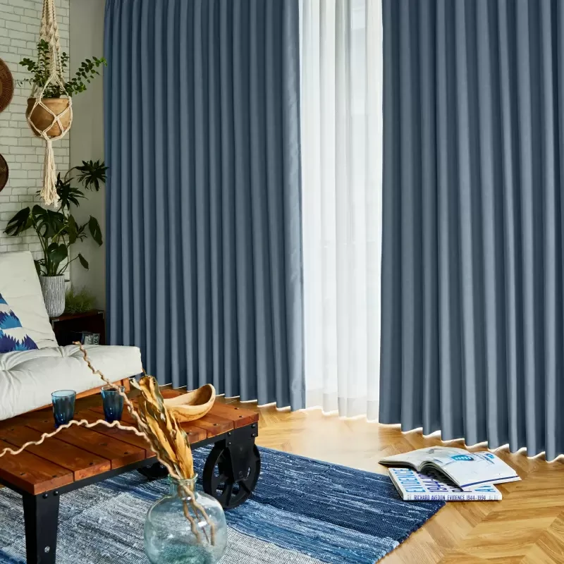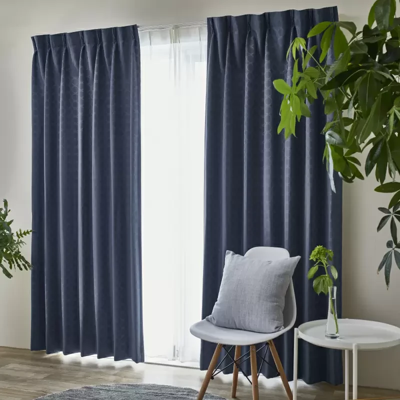 温かみのあるタッチのサークル織り模様が連なった、シンプルで飽きの来ないデザインが魅力の小紋柄シリーズ遮光ドレープです。織り?染めまでの工程をすべて日本国内で行っており、品質は折り紙付きです。
