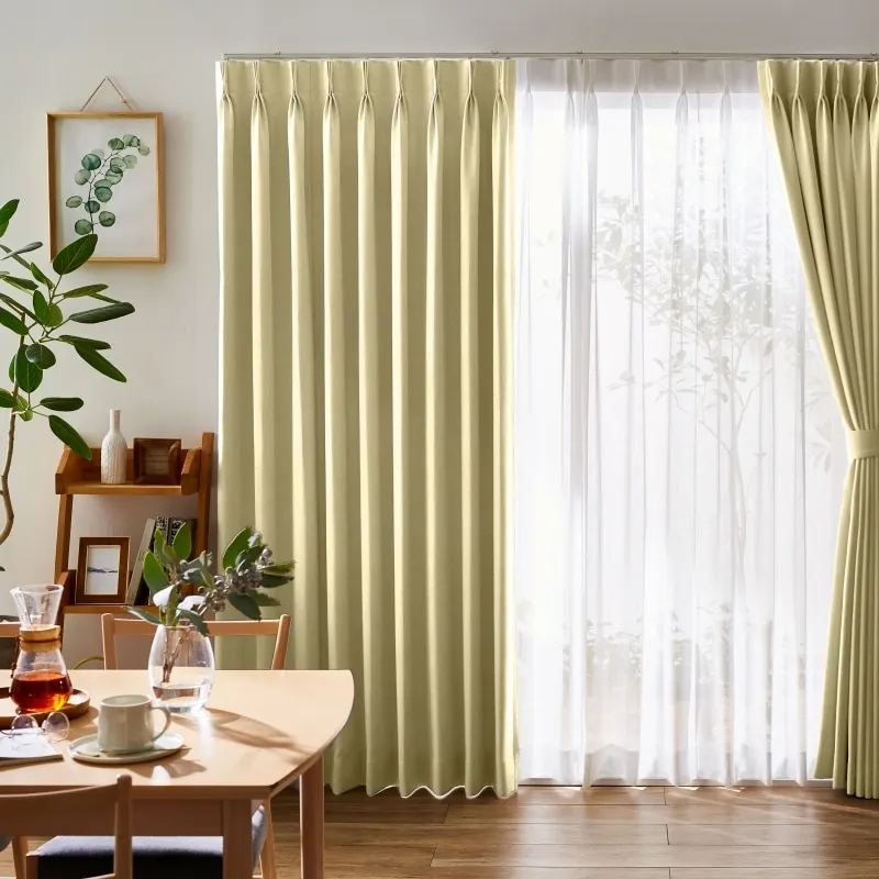 光の当たり具合でエレガントな植物柄が浮き出る、デザインの凝ったおしゃれなカーテンです。少し光沢感もあり、カジュアルになり過ぎないモダンな生地で遮光機能付き。男女問わず大人気の商品です。