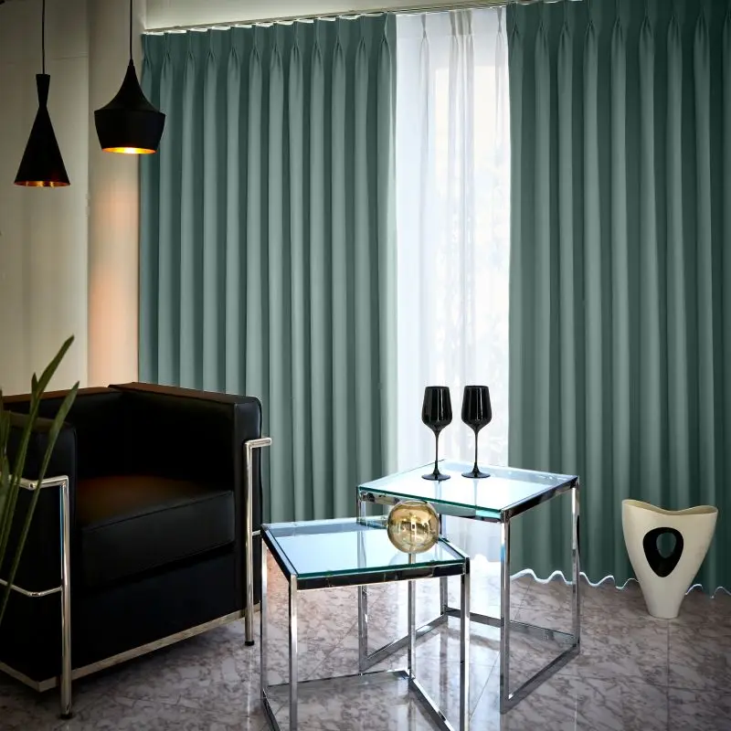 光沢感がありヨコの方向に細かくボーダーが入っております。生地感と色合いがモダンでありどんなお部屋にも使いやすいオススメの遮光カーテンです。