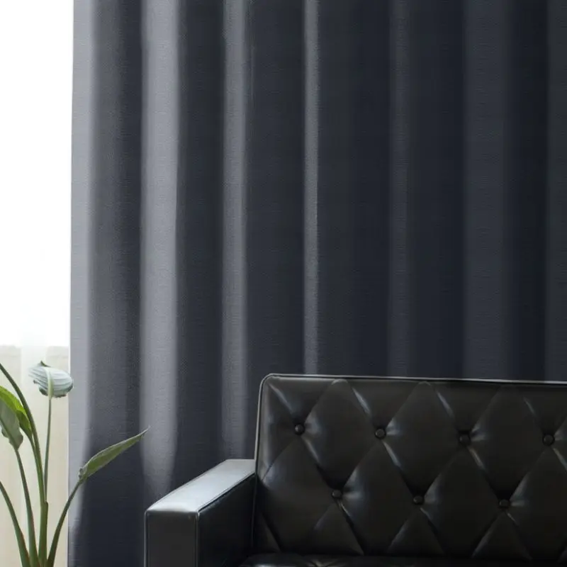 光沢感がありヨコの方向に細かくボーダーが入っております。生地感と色合いがモダンでありどんなお部屋にも使いやすいオススメの遮光カーテンです。