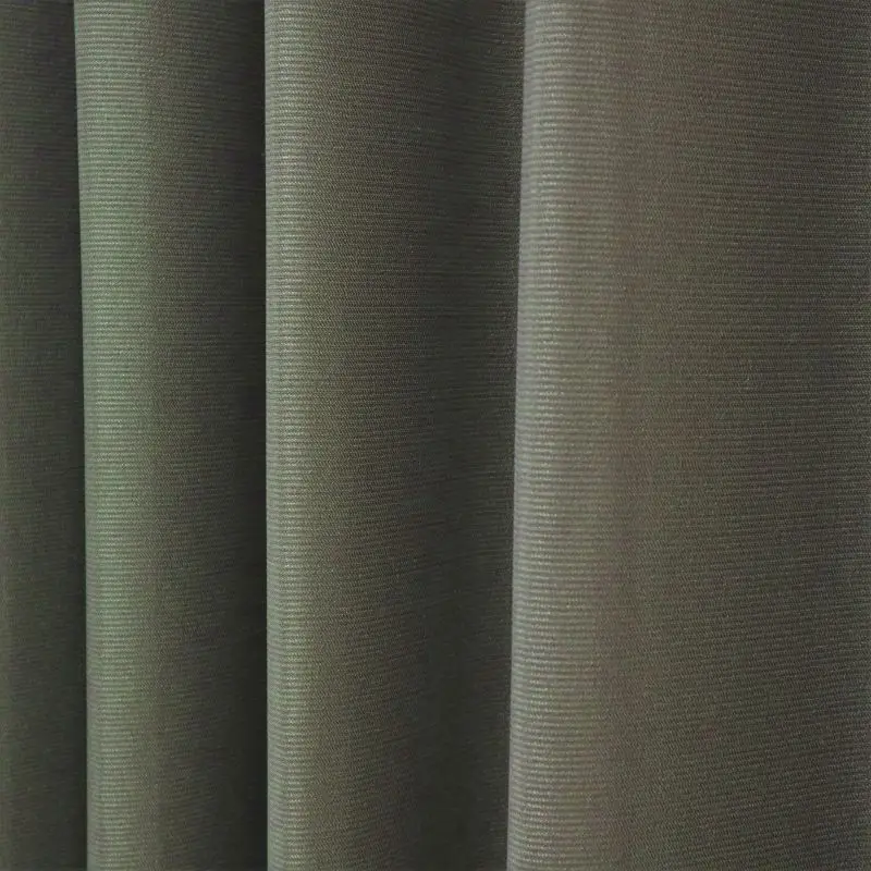 光沢感がありヨコの方向に細かくボーダーが入っております。生地感と色合いがモダンでありどんなお部屋にも使いやすいオススメの遮光カーテンです。