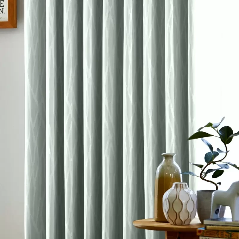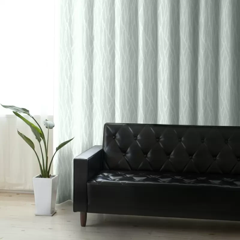 光沢感がありヨコの方向に細かくボーダーが入っております。生地感と色合いがモダンでありどんなお部屋にも使いやすいオススメの遮光カーテンです。