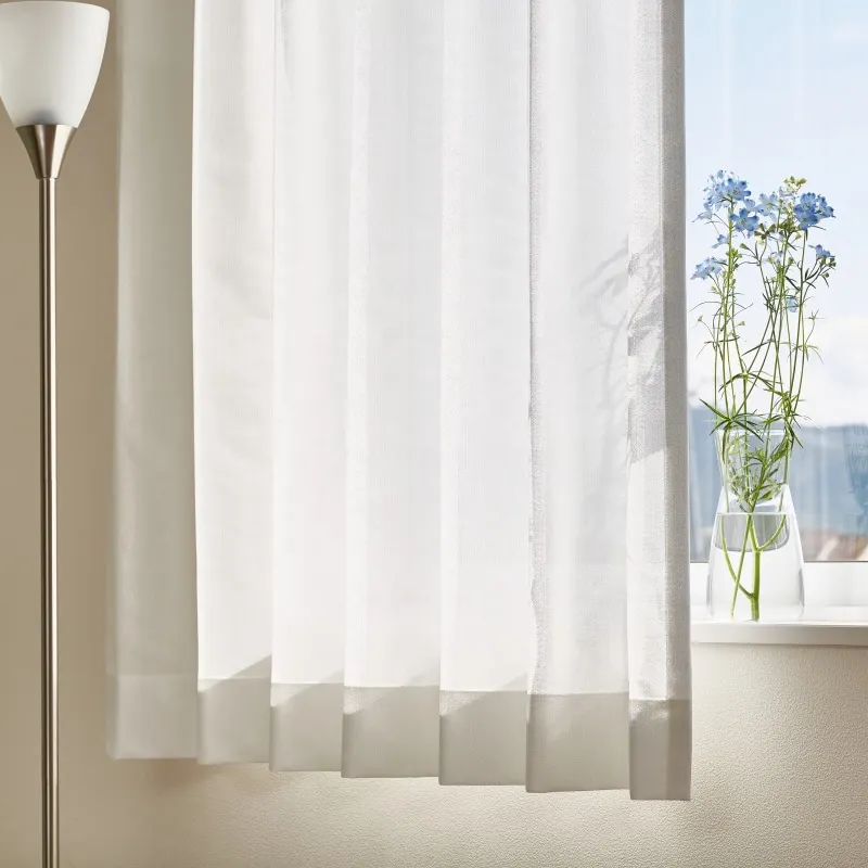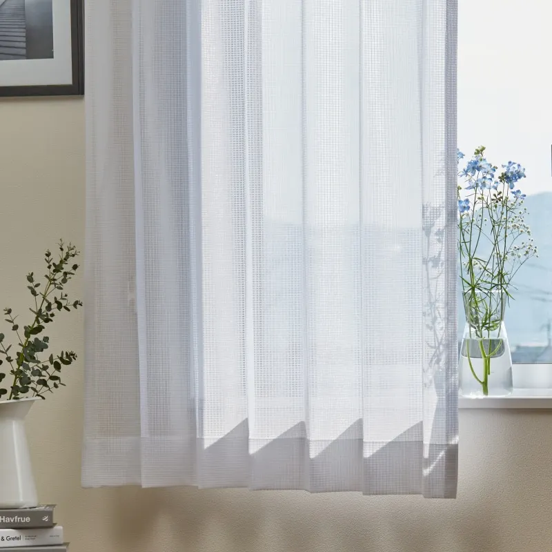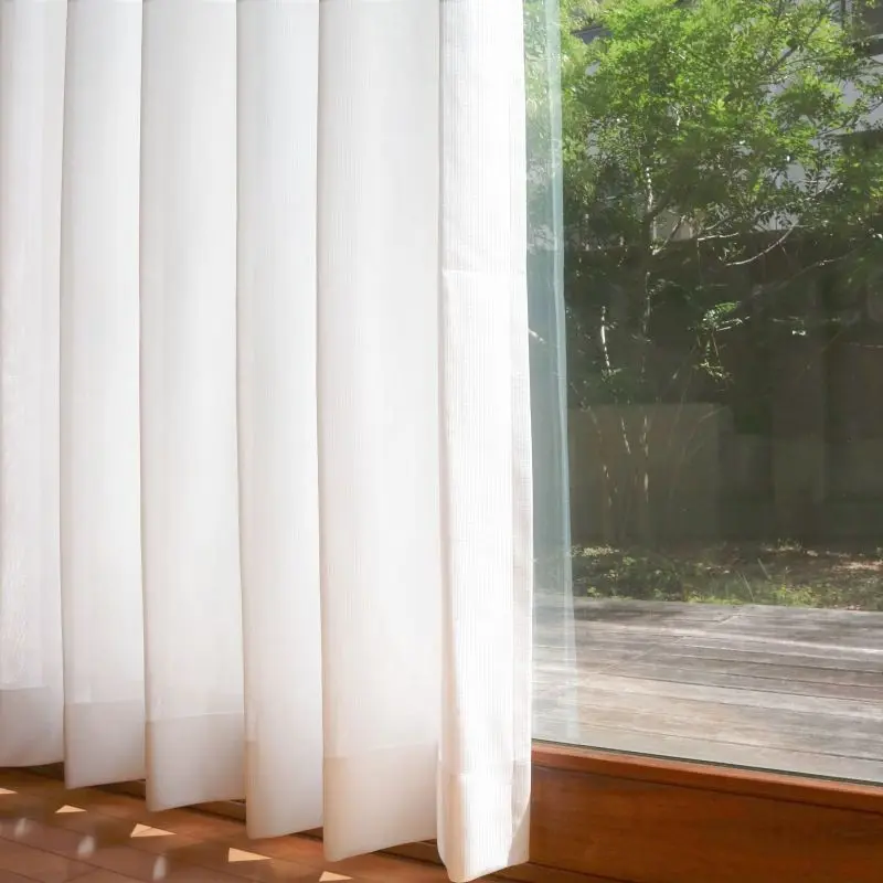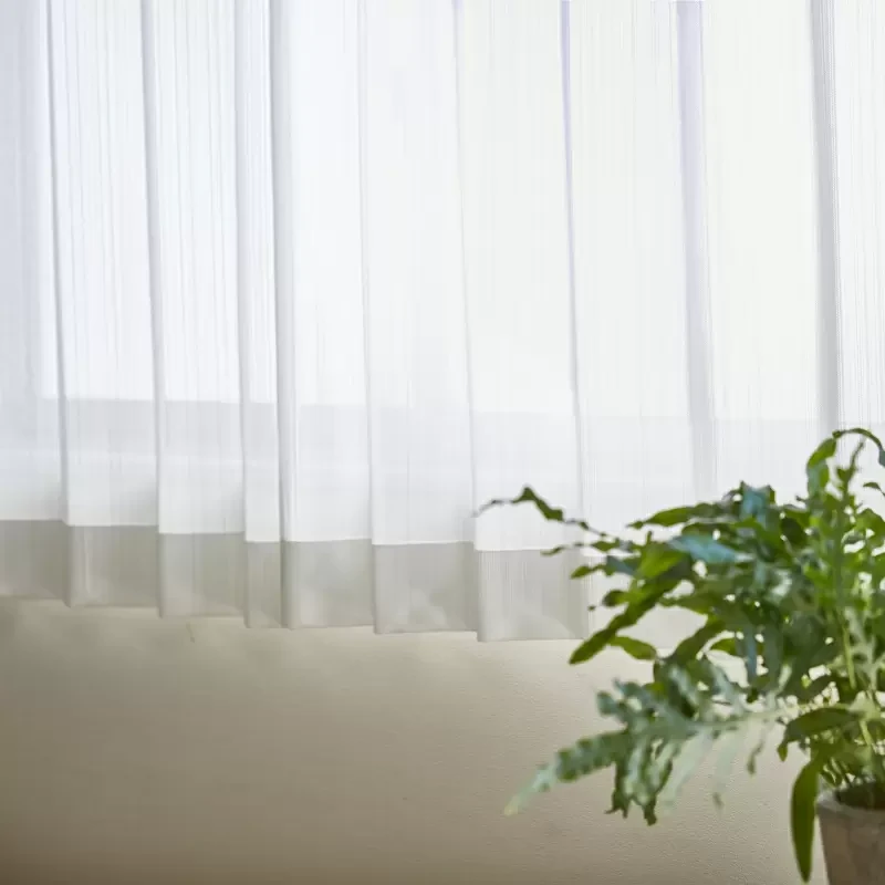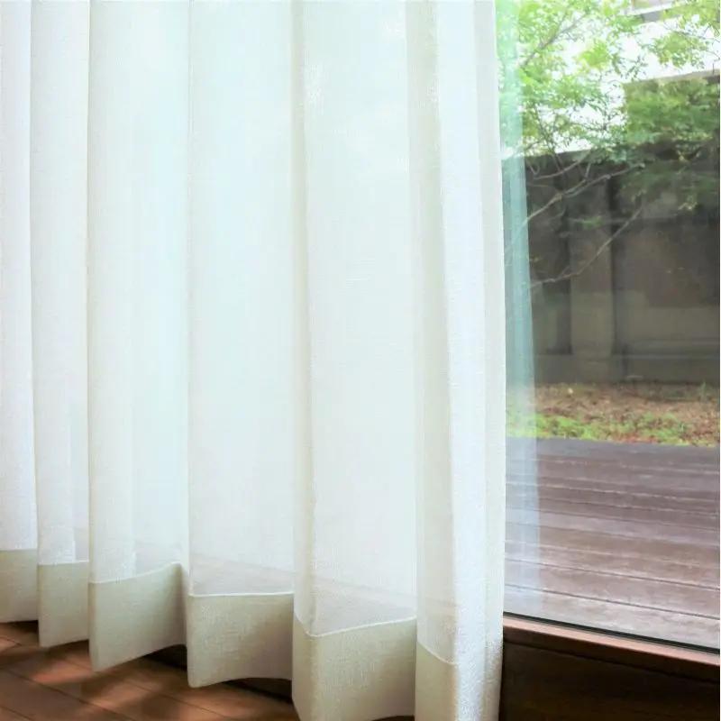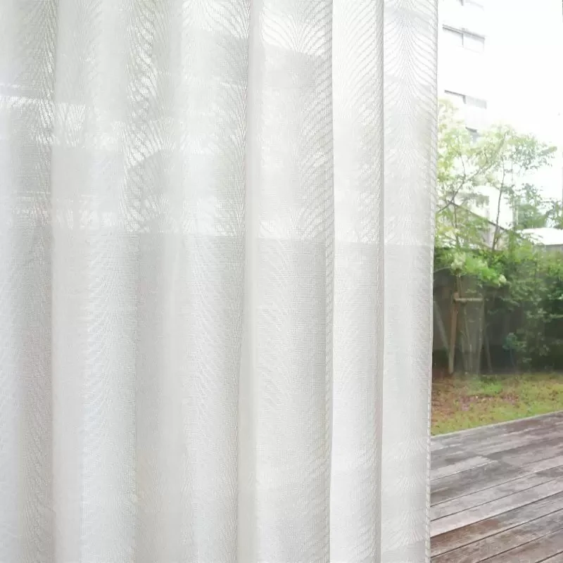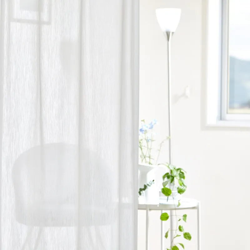 TEIJIN社の特殊繊維「エコリエ」を使用して遮熱、UVカット効果のある機能レースです。さらにミラー機能もあるのでプライバシー対策でお探しの方にもおすすめ。無地調ながらも縦方向に入ったラメ糸が雨模様のようで、キラキラと光って変化も楽しめます。シンプルなので幅広いドレープ生地との相性が良く、コーディネートしやすいおすすめのレースです。ナチュラル、モダン、アーバン、カジュアルなど幅広いテイストに馴染みます。家庭洗濯OK(ウォッシャブル)なので、お手入れも簡単。カラー:クリーンなホワイト色