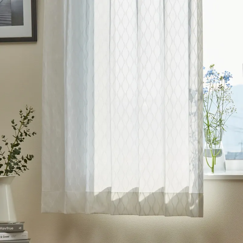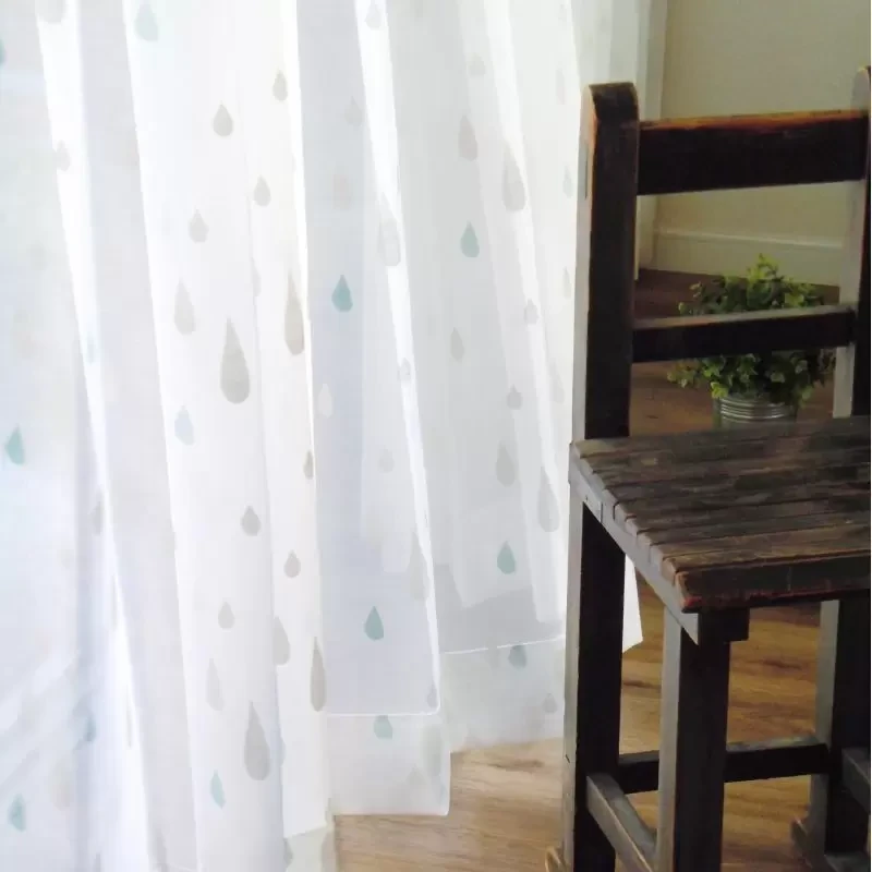 水滴をモチーフにした北欧調のレースカーテンです。ホワイトとカラーのカスレ感がナチュラルさと抜け感を感じさせます。