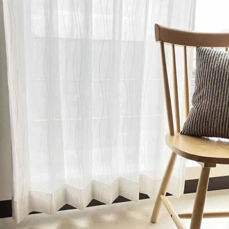 TEIJIN社の特殊繊維「エコリエ」を使用して遮熱、UVカット効果のある機能レースです。さらにミラー機能もあるのでプライバシー対策でお探しの方にもおすすめ。流れるような縦の波柄の中にはラメ糸も入っていて、揺らぎの変化が楽しめます。シンプルな柄なので、ナチュラル、モダン、アーバン、エレガンス、クラシック、カジュアルなど幅広いテイストに合わせやすく、家庭洗濯OK(ウォッシャブル)なのでお手入れも簡単。カラー:クリーンなホワイト色