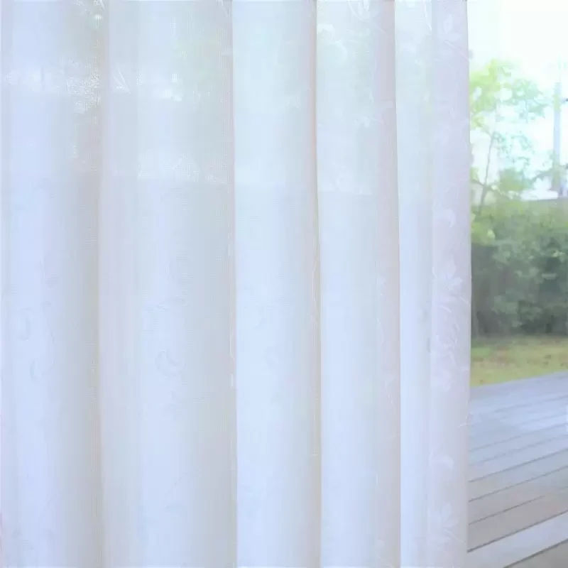 ミラー機能付きレースカーテン。ボリュームのある糸でのびやかに植物柄が描かれたエレガントなレースカーテンです。