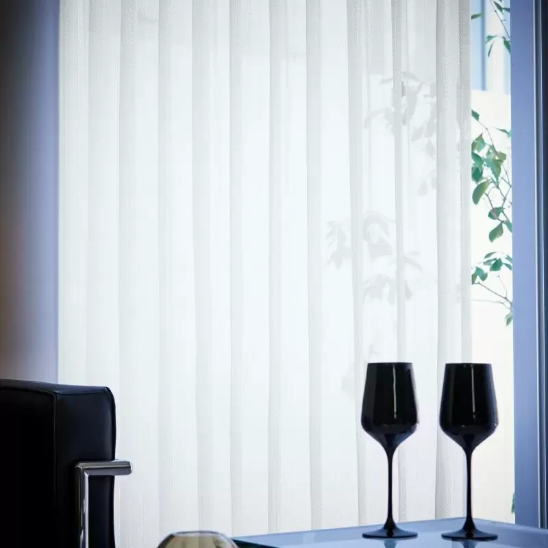 ミラー・UVカット・遮熱・防蚊効果のある機能レースです。縦のラインが強調されたレースカーテンです。